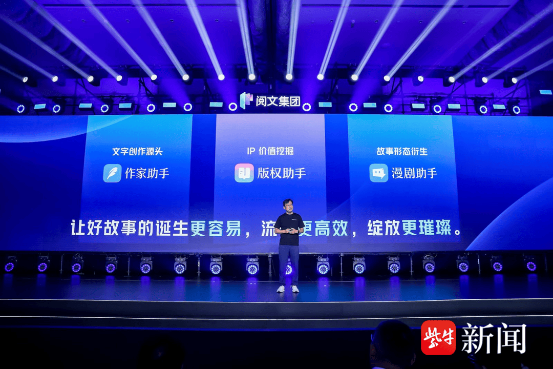 AI技术赋能IP生态,阅文集团高级副总裁黄琰在现场发布三项AI应用升级:行业首创的千万字网文深度理解能力“妙笔通鉴”以及“版权助手”、“漫剧助手”,覆盖创作辅助、版权开发和漫剧改编不同环节。
