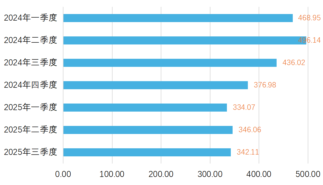 据Wind数据统计,成立近20年,诺德基金公募管理规模始终未能突破500亿元,此前峰值为2024年二季度的496.14亿元。2024年三季度以来,该公司公募管理规模整体呈波动下滑态势,截至2025年三季度末为342.11亿元,在行业中排第94位。