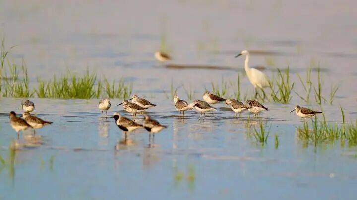 “高大涉禽如东方白鹳喜欢水位深点、个头稍小的黑脸琵鹭水位得降下来一点。个头很小的勺嘴鹬就只能在很浅的水面上活动。”条子泥湿地运营部主管金娟介绍,条子泥通过对水位的控制,形成深水区、浅水区、光滩区等不同的栖息环境,满足多种鸟类的活动需求。