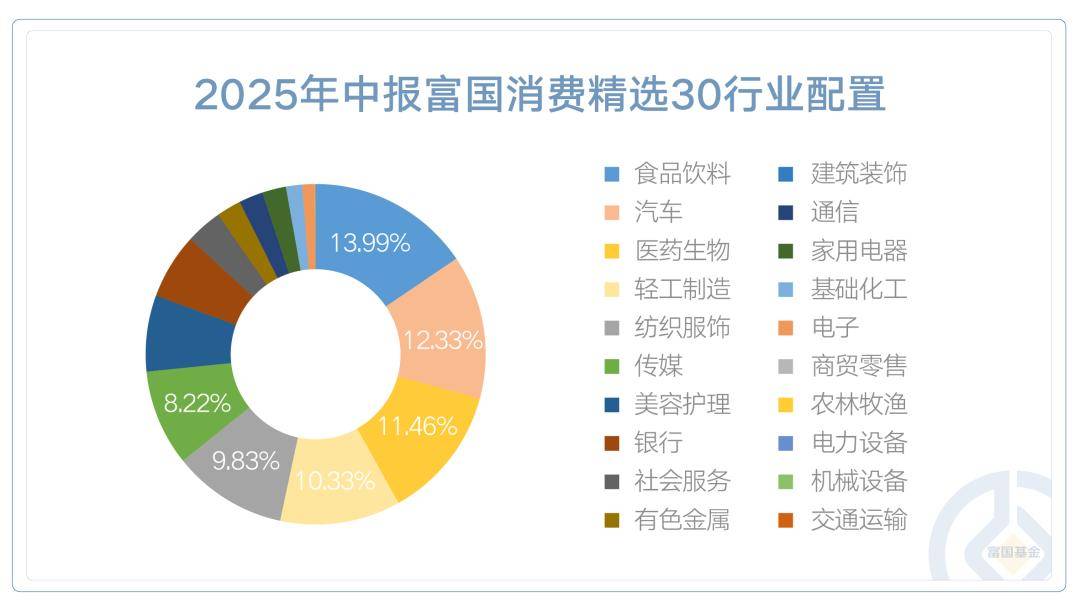 数据来源:富国消费精选30历次定期报告,Wind,截至2025年6月30日;注:行业分类采用申万一级行业分类,定期报告内容为历史特定时点数据,可能发生变化,不预示本基金未来投资配置。