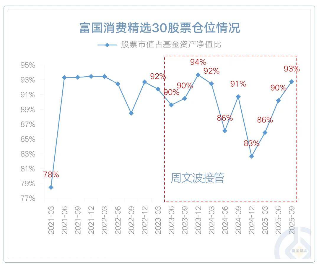 数据来源:富国消费精选30历次定期报告,Wind,截至2025年9月30日,定期报告披露的股票仓位为历史特定时点数据,可能发生变化,不预示本基金未来投资配置。
