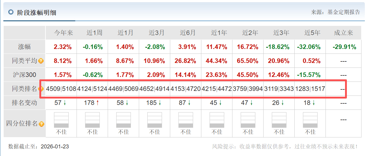 而固化的持仓和上述操作也导致该基金的业绩并不占优。从近1年、近2年、近3年、近5年以及成立以来分别实现收益11.47%、16.72%、-18.62%、-32.06%和-29.91%,但无论是业绩正还是负,同类排名均处于垫底层次。不过从定期报告来看,管理费却是一点没少收,2022年至2025年上半年,该基金分别收取了管理费2432.6万元、1950.29万元、1233.82万元、512.61万元,边吃边拿,吃相属实有些难看。
