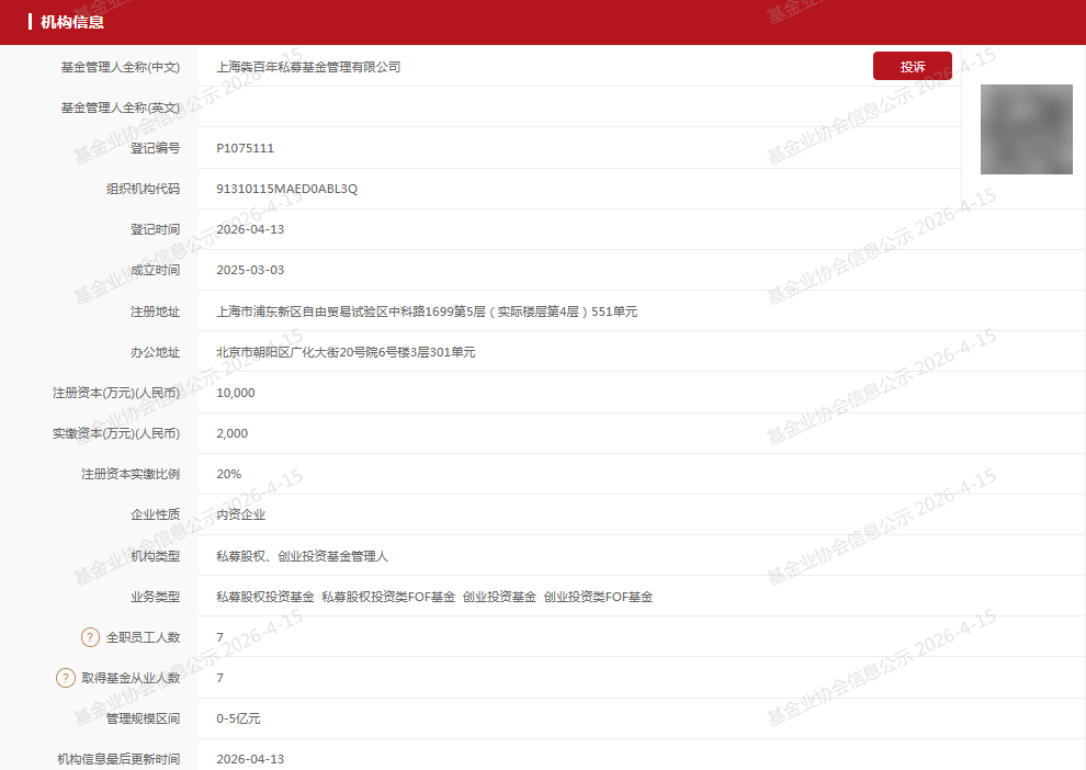 2026-04-17彩票,彩票平台,彩票网站,彩票APP下载,六合彩,快三中国证券投资基金业协会(下称协会)网站显示,4月13日,又有5家私募基金管理人在协会顺利完成登记。其中2家公司格外引人关注,一是原百亿量化私募高管搭建的新平台,二是知名上市公司蒙牛旗下设立的股权私募。