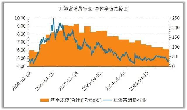 以其管理规模最大的汇添富消费行业(000083.OF)为参考,自2021年起,该基金连续四年亏损,各年度回撤分别为-4.20%、-20.48%、-17.89%、-5.31%。2025年市场反弹中,该基金仅实现1.89%的正收益,而同期沪深300涨幅都达到17.66%。进入2026年,截至4月15日该基金年内继续下跌7.83%,在5049只同类产品中排名第4780位。
