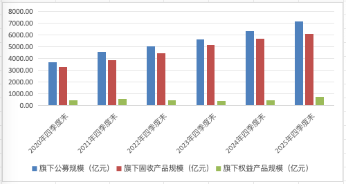 权益类管理规模增长主要来自新基金的成立和存量基金的扩容。2025年,平安基金旗下累计成立14只主动权益类基金(各类份额合并计算),2025年四季度末规模为67.37亿元。