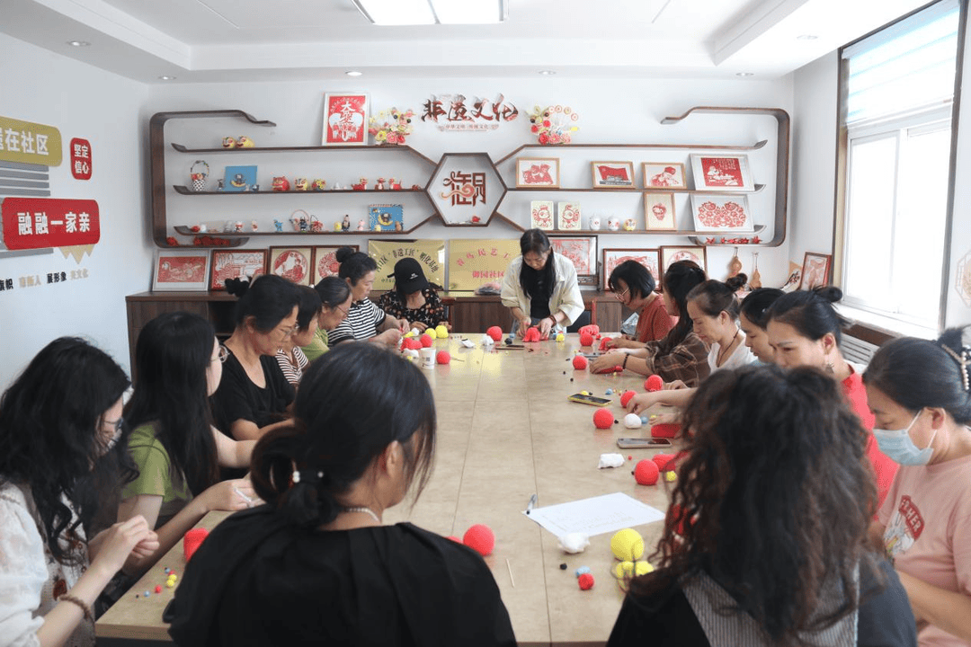 2019年,社区发起“青鸟民艺工坊”文明实践志愿服务项目,围绕花馍、剪纸、面塑等传统技艺,设立6个子项目并建成非遗工作室。项目累计邀请56位非遗传承人入驻,带领2000余名志愿者开展非遗课堂、节庆展演等活动610余场,让传统技艺走出橱窗、走进居民生活。此外,社区还以“非遗传承+技术赋能”为路径,孵化“花馍坊”等共富平台,助力辖区妇女掌握非遗技能、实现创新创业。其中,杨梅老师创作的面塑作品《油地情》,更在山东手造精品展中斩获荷花杯金奖,生动诠释了油地文化交融的独特魅力。