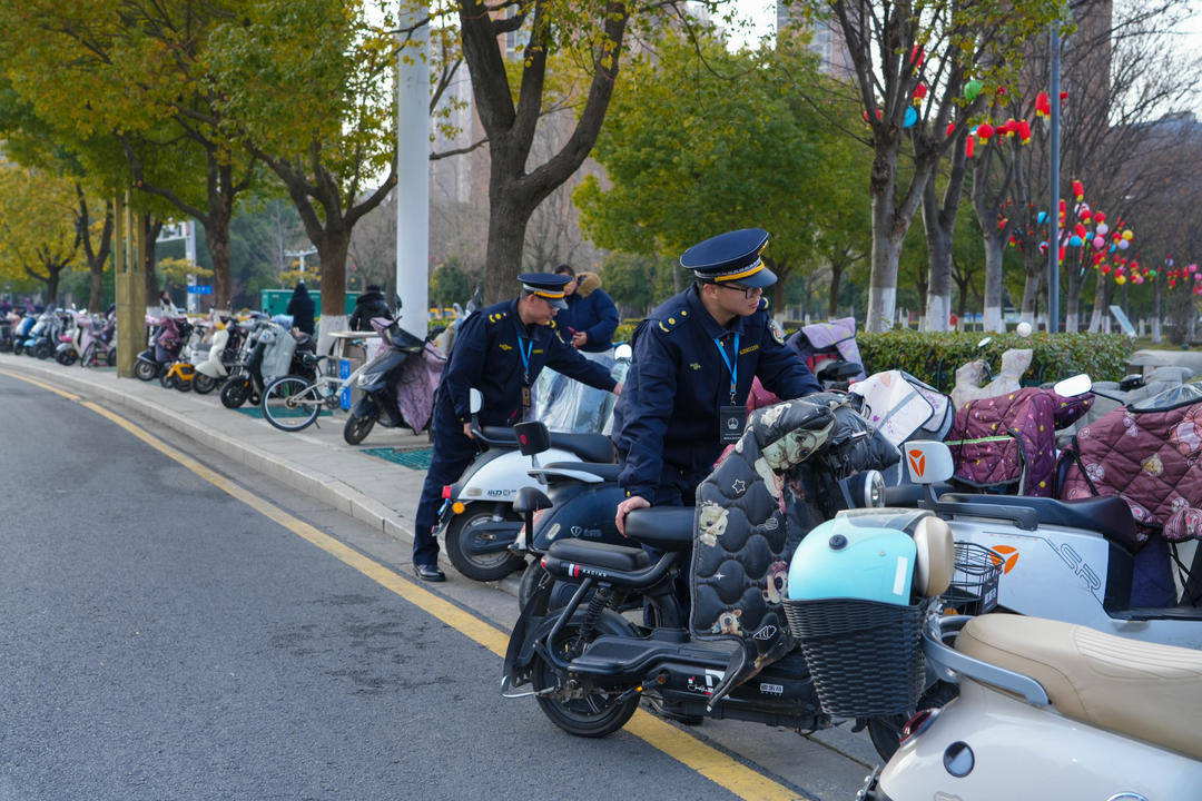 针对年货大集期间人流密集、非机动车集中停放的情况,六合城管提前对活动周边非机动车停放情况进行全面摸排。结合场地条件和人流走向,合理规划、微调设置,科学增设临时停车区域,充分满足市民购物停车需求。加强共享电单车投放、调度和清运管理,及时整改、清运过量及乱停车辆。在重点时段及易拥堵节点,增加队员进行现场引导,规范非机动车车辆停放秩序,有效维护广场周边交通微循环畅通有序。